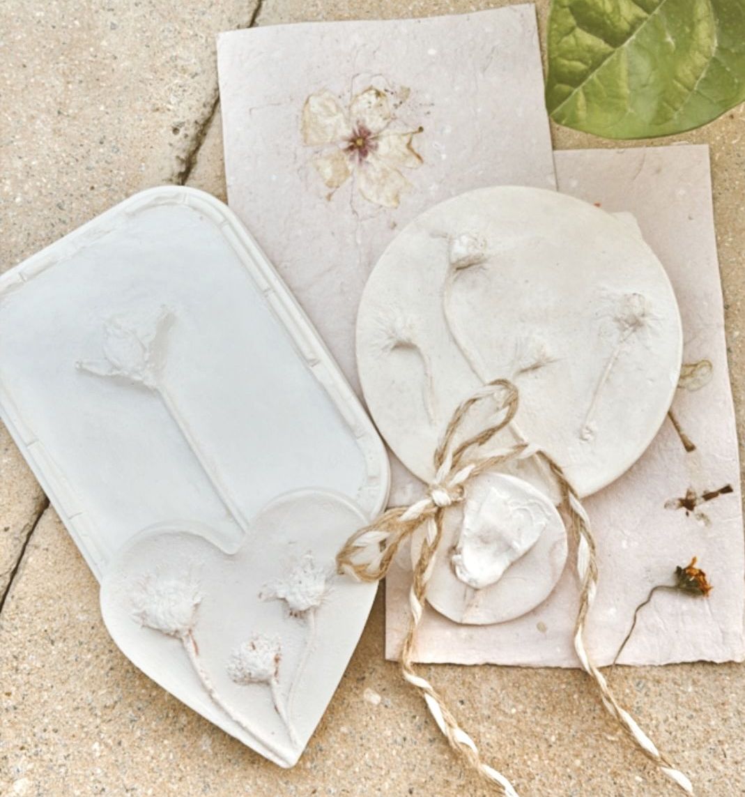 A poetic imprint of flowers, preserved in plaster with care, turning nature’s delicate beauty into timeless art, giving each bloom a second chance.